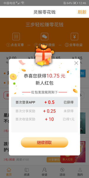 灵猴 分类:安卓赚钱 大小:1.75 MB 开发者:随手家下载次数:3256最新版本:3.4.6热度: 作者: 发布: 2020-03-14 10:05:43 支持: 安卓 Tags: 安卓下载 APP截图 应用介绍 灵猴app,随手旗下全新平台8月1日10点上线! 阅读单价0.3元,涨分超快! 注册送0.5元,2元提现,秒到账!文章、广告正规,适合所有人转发!收徒活动同步上线, 徒弟首提师傅可得4-8元奖励, 收徒奖励最高达16元,师父可得20%+10%二级转发分成! 联系我们 客服微信:Bengshakalaka199 最新应用 乐米资讯 淘金赚 猫猫赚 每天赚点 灵猴 小龙赚钱 蘑菇乐园 钱大师安卓版 泡泡赚 米赚